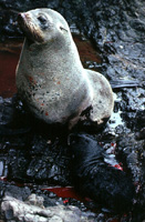 The species was considered extinct after most of the population was killed in 1928 but it was rediscovered in 1954. The Guadalupe fur seal is now fully protected by Mexican national legislation, the Isla de Guadalupe having been declared a pinniped sanctuary in 1975. It is protected in the U.S. portion of its range by Californian law, as a Threatened species under the U.S. Endangered Species Act, and as a Depleted and Strategic species under the U.S. Marine Mammal Protection Act. The species is also listed as Near Treatened on the IUCN Red List and as an Appendix I species under CITES. Some Guadalupe fur seals may be killed by entanglement in drift and set gillnets but there is insufficient data on this problem. Individuals, especially juvenile females, have also been found stranded with injuries caused by entanglement in marine debris. There was a 33% pup mortality in 1992 due to El Nino and Hurricane "Darby" but it is not yet known how the population was affected by the 1997-1998 El Nino event. |
