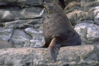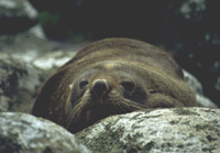 | The mother leaves her pup in order to feed at sea about 11 days after giving birth, longer than for other fur seal species, and for the next 7-10 months she alternates periods of an average of 5 days nursing her pup on land with feeding trips lasting an average of 12 days. The lengths of these feeding trips are exceptionally long for a fur seal. The fur of the Juan Fernandez fur seal is black-brown, lighter on the front. The necks and fore-flippers of the males are usually scarred from fighting. The Juan Fernandez fur seal has a fairly narrow range of prey species, probably due more to availability rather than specialisation, their main prey being myctophid and squid. The individuals of this species do not dive very deeply, one study showing that females dive to an average of only 12.3m while feeding. Sharks and killer whales are known to prey on Juan Fernandez fur seals. Statistics Adult males measure 1.5-2.1m in length and weigh about 140kg, while adult females normally measure about 1.4m in length and weigh about 50kg. Pups are born 65-70cm in length and weigh 6-7kg, male pups being slightly longer and heavier than female pups. It is thought that males may live over 13 years while females may live up to 23 years. |