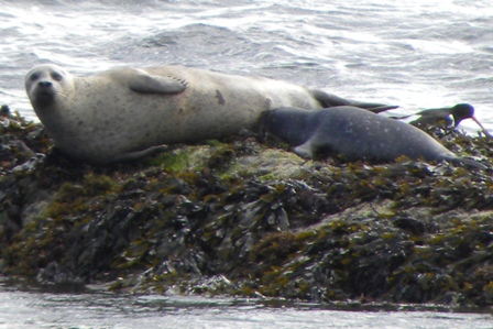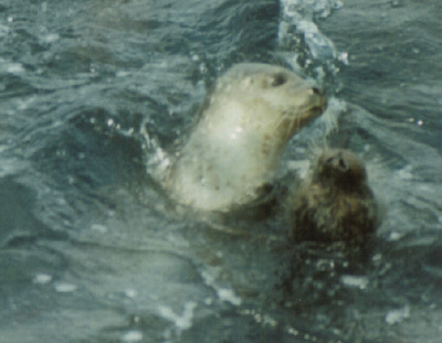 | Pups only sometimes accompany their mothers on dives, however. Wilson (1974) found that mothers at a site in Ireland dived close to the haul-out site, leaving the pup sleeping at the surface and returning to check the up between dives. However, more recently at other sites in Ireland, mothers are regularly seen to 'park' their pups at the haul-out site and go off (presumably to forage) without them, and later return to claim them. These 'lone pups' tend to stay with the group, often amongst other pups, and follow the group of seals if they move from rock to rock as the tide fluctuates (Wilson, pers. obs.). Pups on Sable island were also often left on the beach while their mothers were away foraging (Bowen et al, 1999). These different observations are doubtless due to differences in the foraging ecology of the area, and a sizeable group of seals in which to leave the pup and where the mother may easily find it with the haul-out group again on her return. |